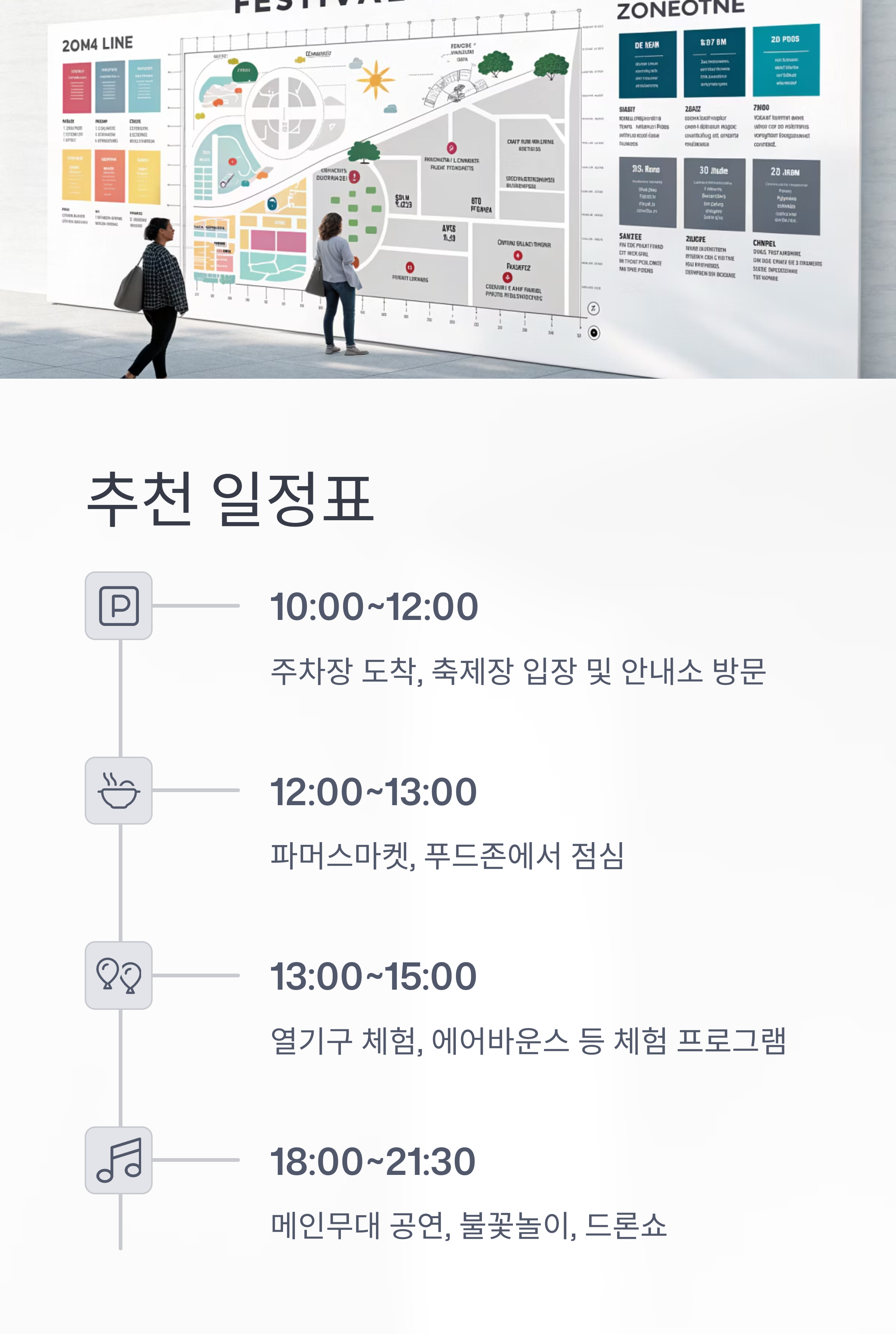 - 마켓·먹거리: 파머스마켓, 플리마켓, 카페거리, 푸드존