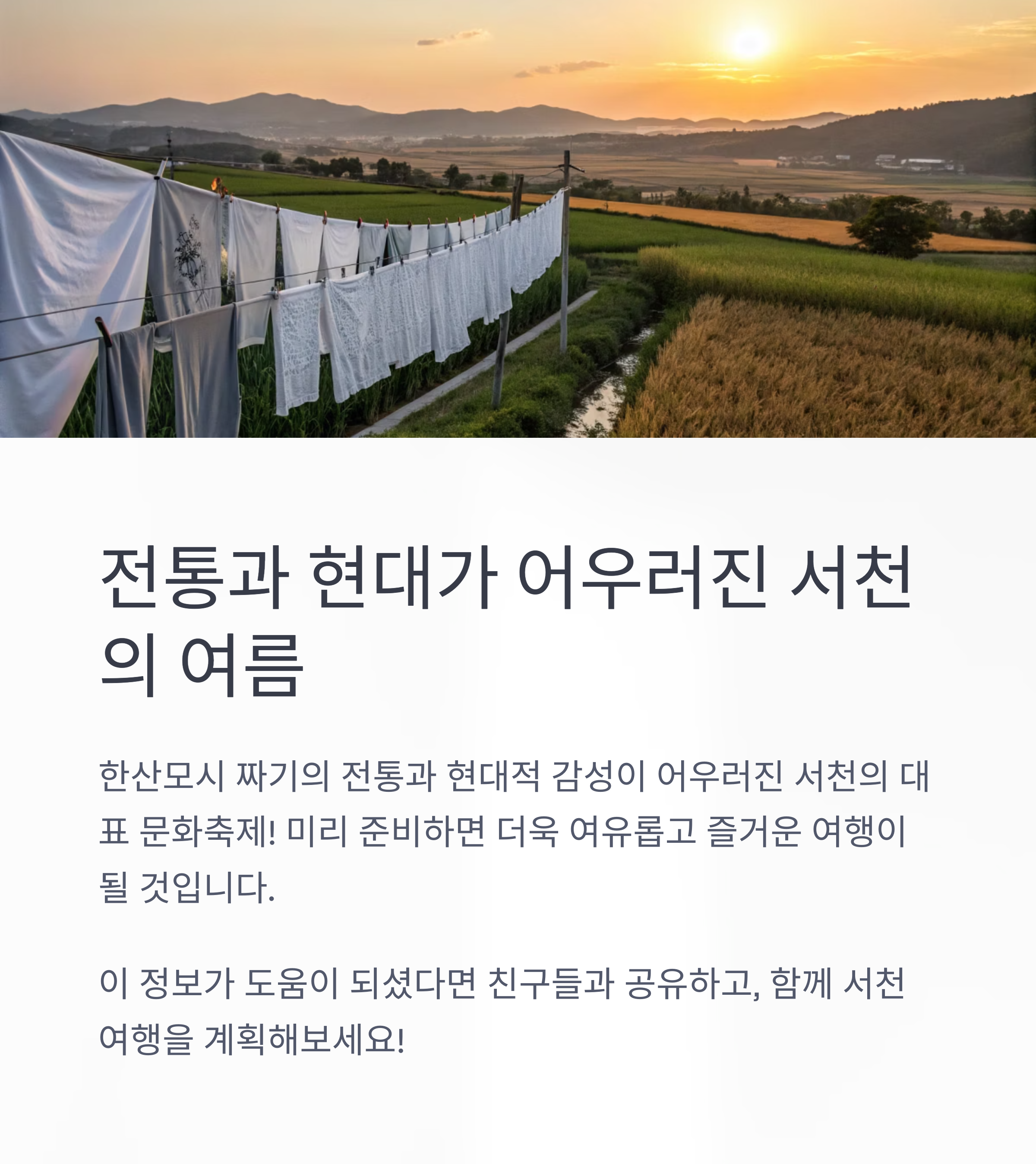 마무리: 전통과 현대가 어우러진 서천의 여름