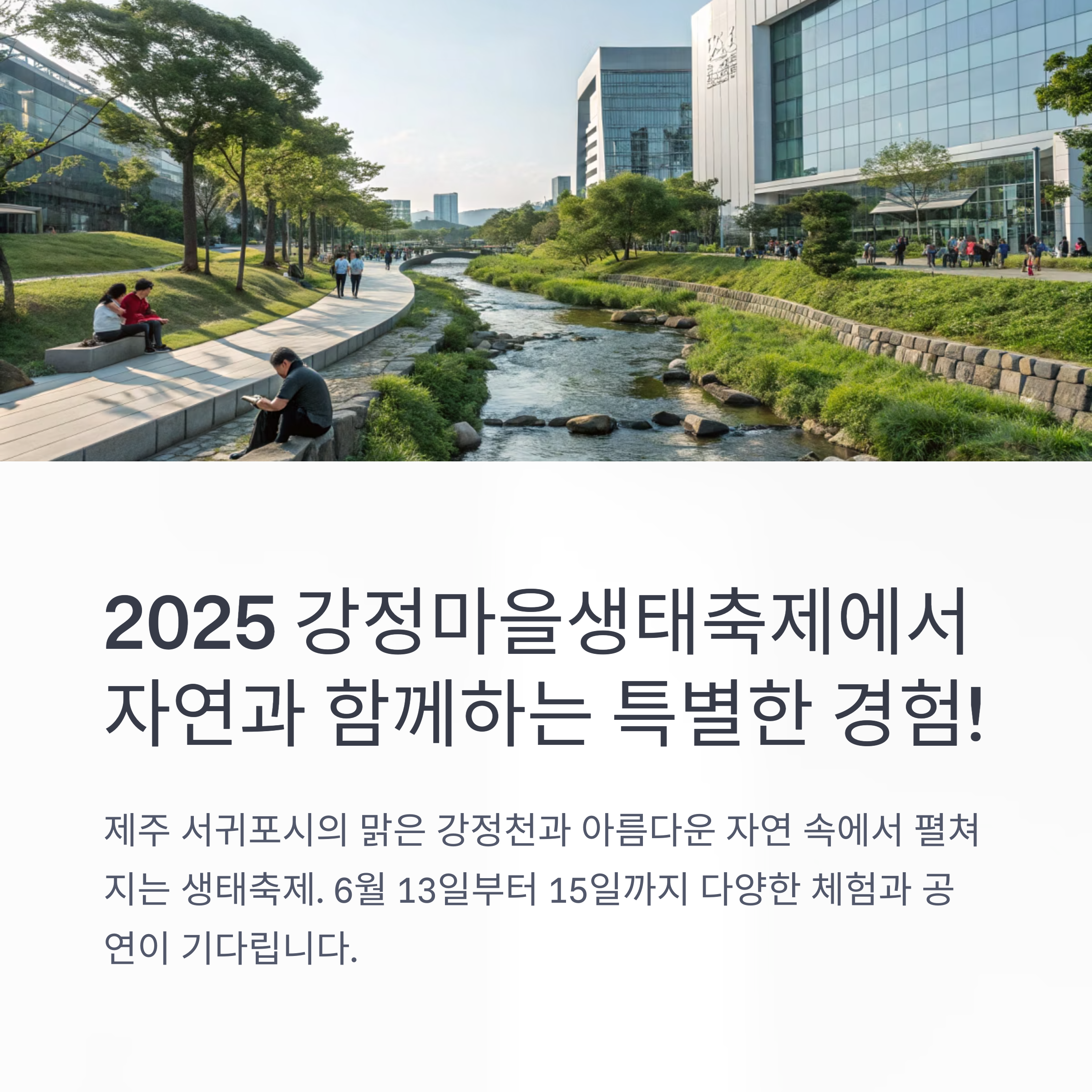 제주 서귀포시의 맑은 강정천과 아름다운 자연을 배경으로 펼쳐지는 강정마을생태축제가 2025년 6월 13일(금)부터 15일(일)까지 강정마을과 강정천, 강정포구 일대에서 개최됩니다. 이 축제는 자연과 사람, 생명이 어우러지는 생태의 장으로, 지속가능한 환경보호와 자연보전의 중요성을 알리는 다양한 체험과 공연, 먹거리, 캠핑, 트레킹 등 남녀노소 모두가 즐길 수 있는 프로그램으로 가득합니다. 이번 글에서는 2025 강정마을생태축제 일정, 강정마을 주차장 정보, 그리고 서귀포 숙소 추천까지, 여행에 바로 도움이 되는 실전 정보를 꼼꼼하게 안내합니다.