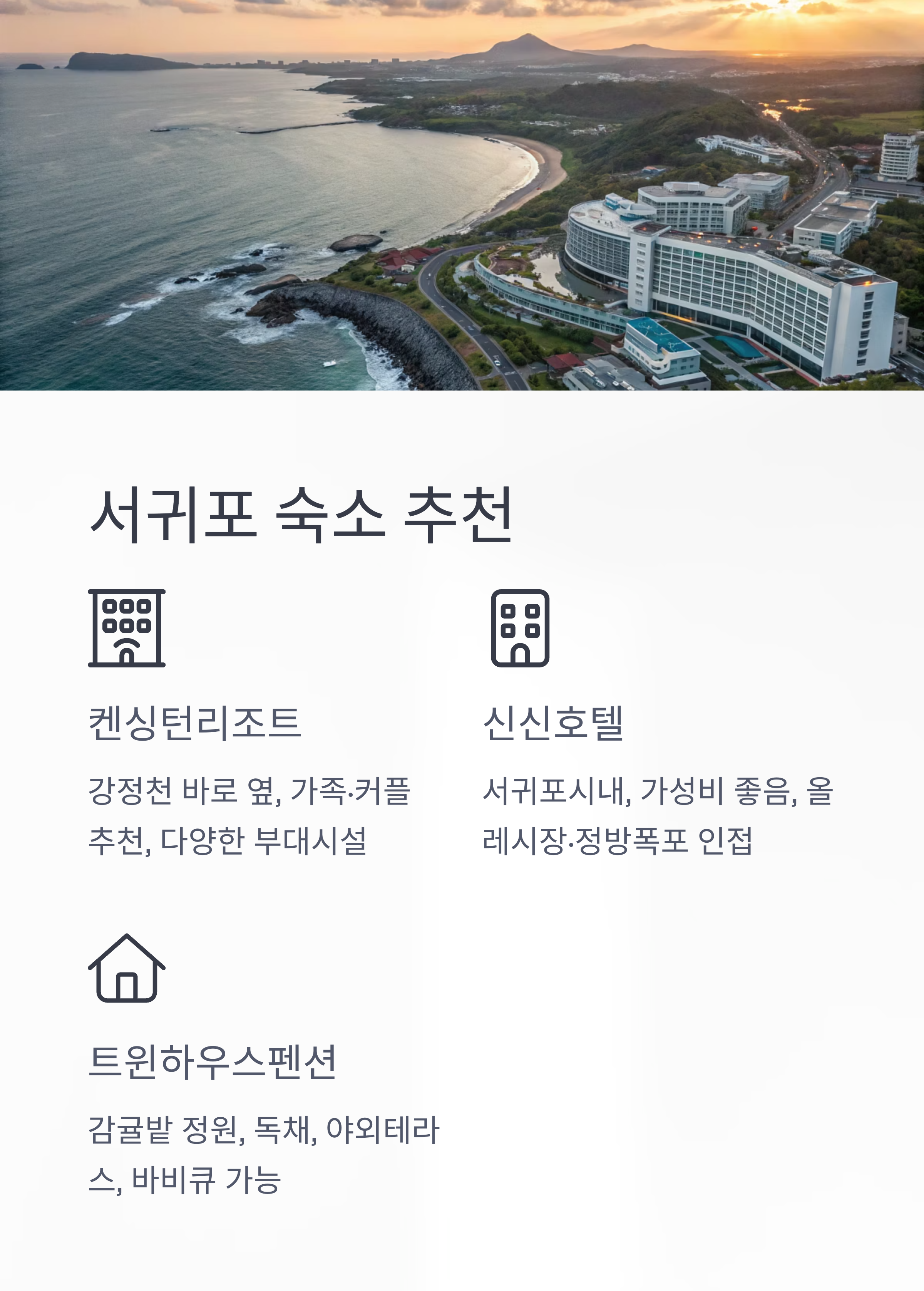 서귀포 숙소 정보: 호텔, 리조트, 펜션, 가족형 추천
