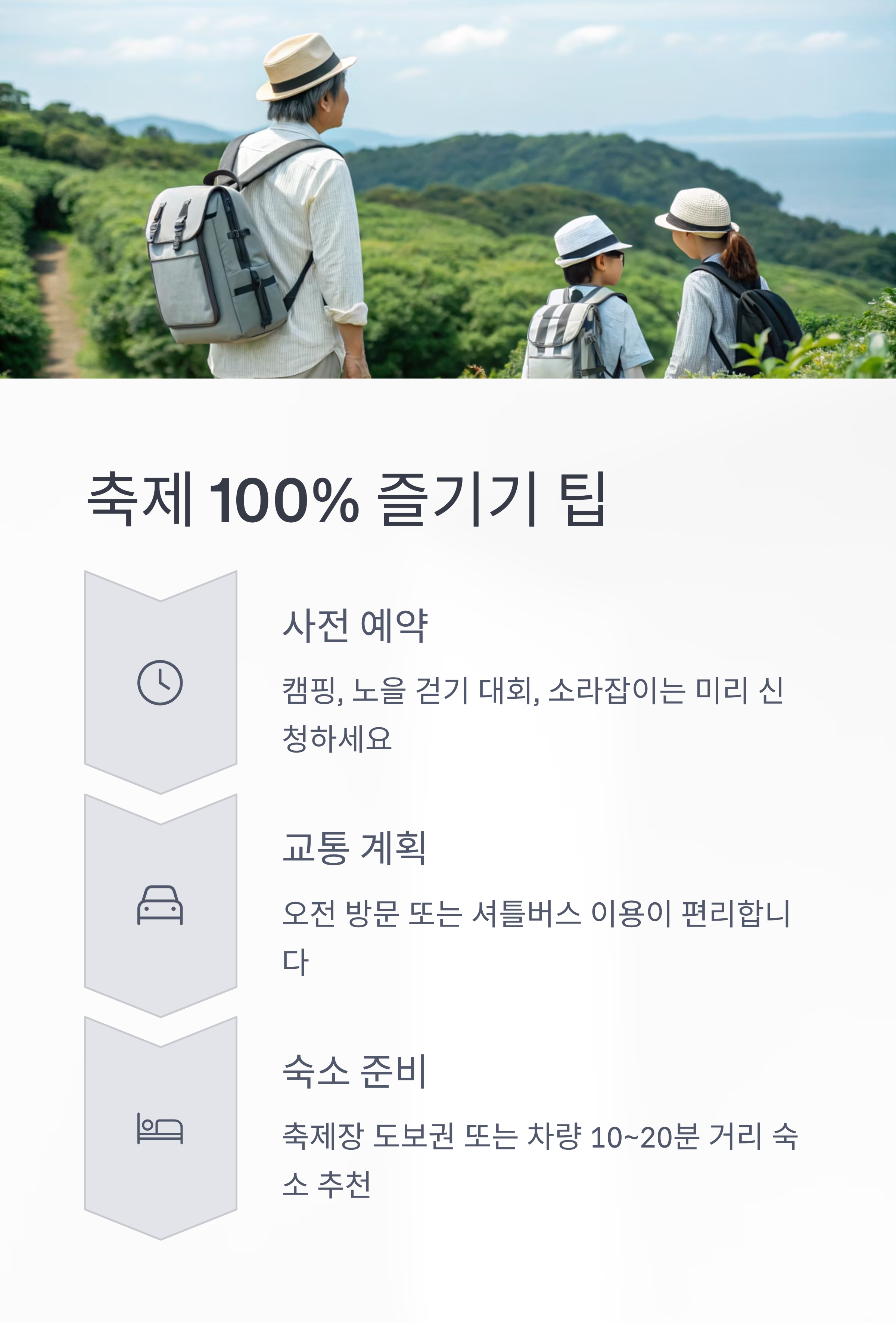 - 주차장은 무료이나, 축제 기간에는 조기 만차될 수 있으니 오전 방문 또는 셔틀버스 이용을 추천합니다.