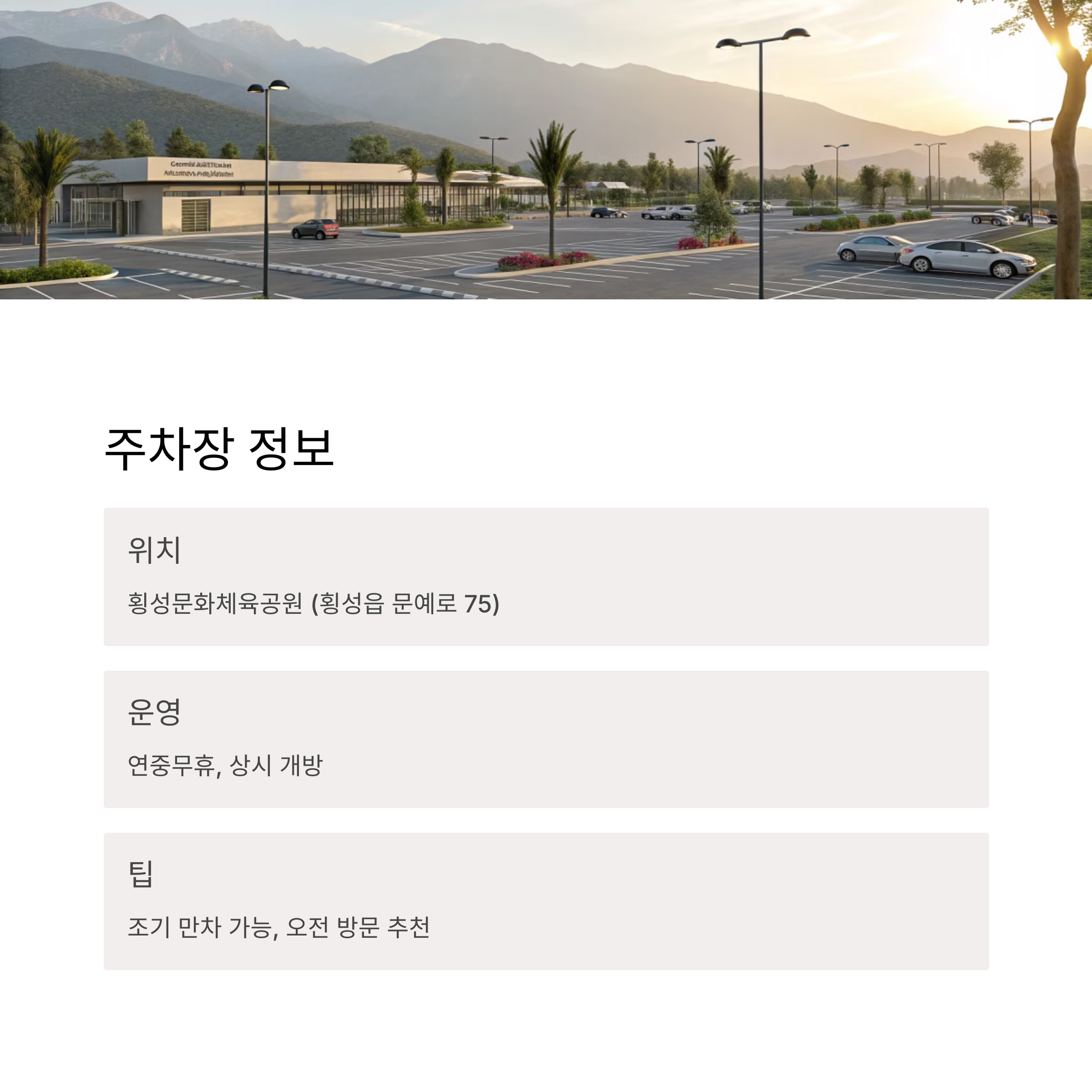 횡성문화체육공원 주차장 위치 및 이용 팁