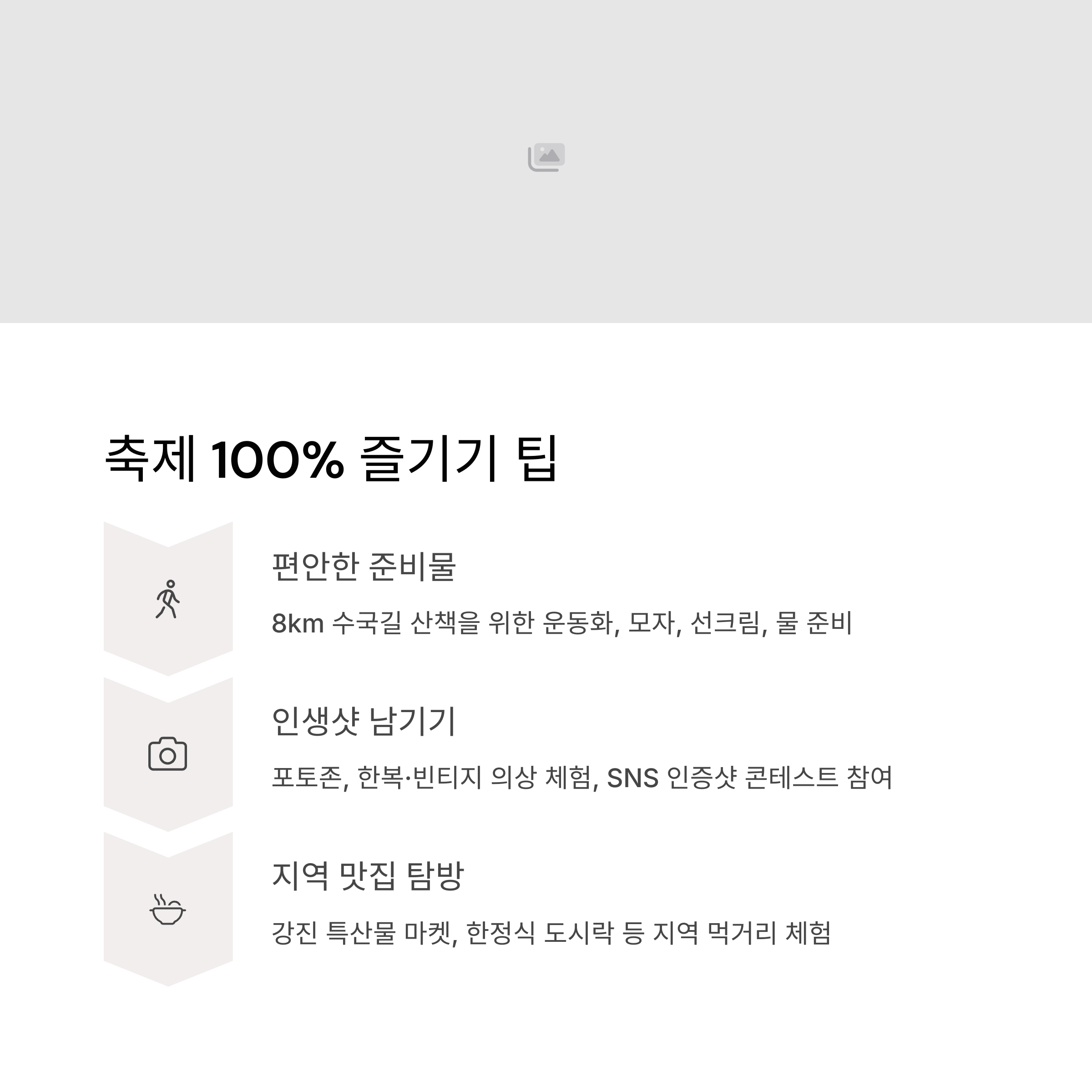 - 제1주차장: 축제장과 도보 10~15분 거리, 넓은 공간, 무료