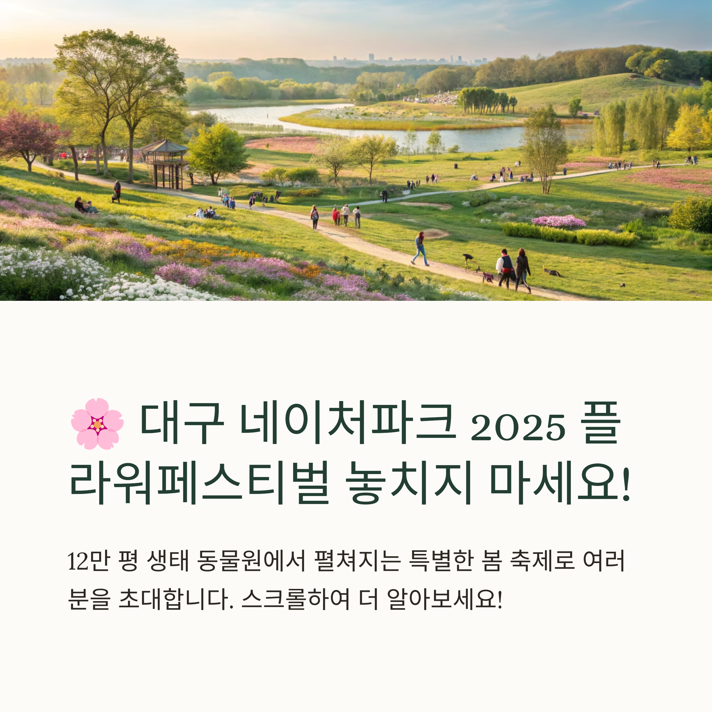 안녕하세요, 오늘 여러분께 들려드릴 소식은 대구광역시 네이처파크에서 열리는 2025 플라워페스티벌에 관한 내용입니다.