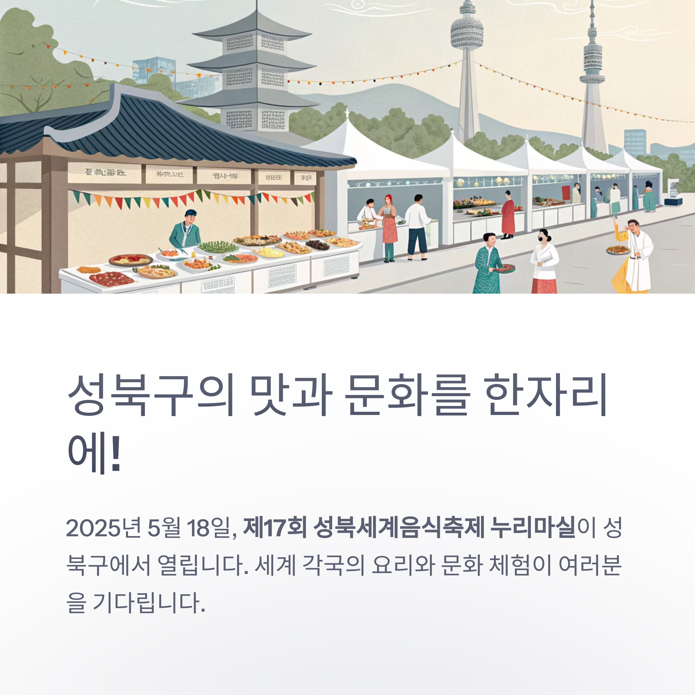 오는 2025년 5월 18일, 서울 성북구에서 제17회 성북세계음식축제 누리마실이 열립니다.