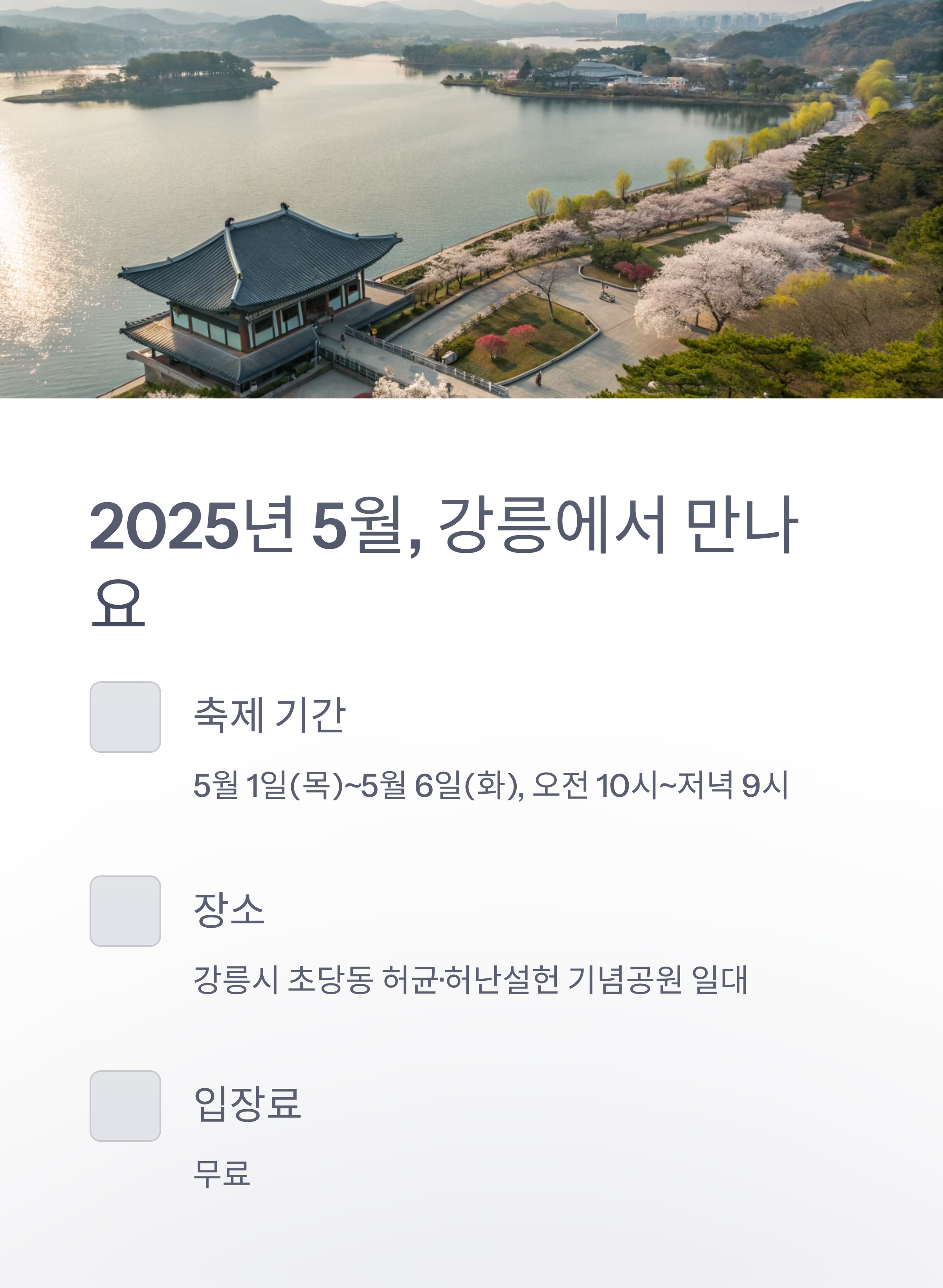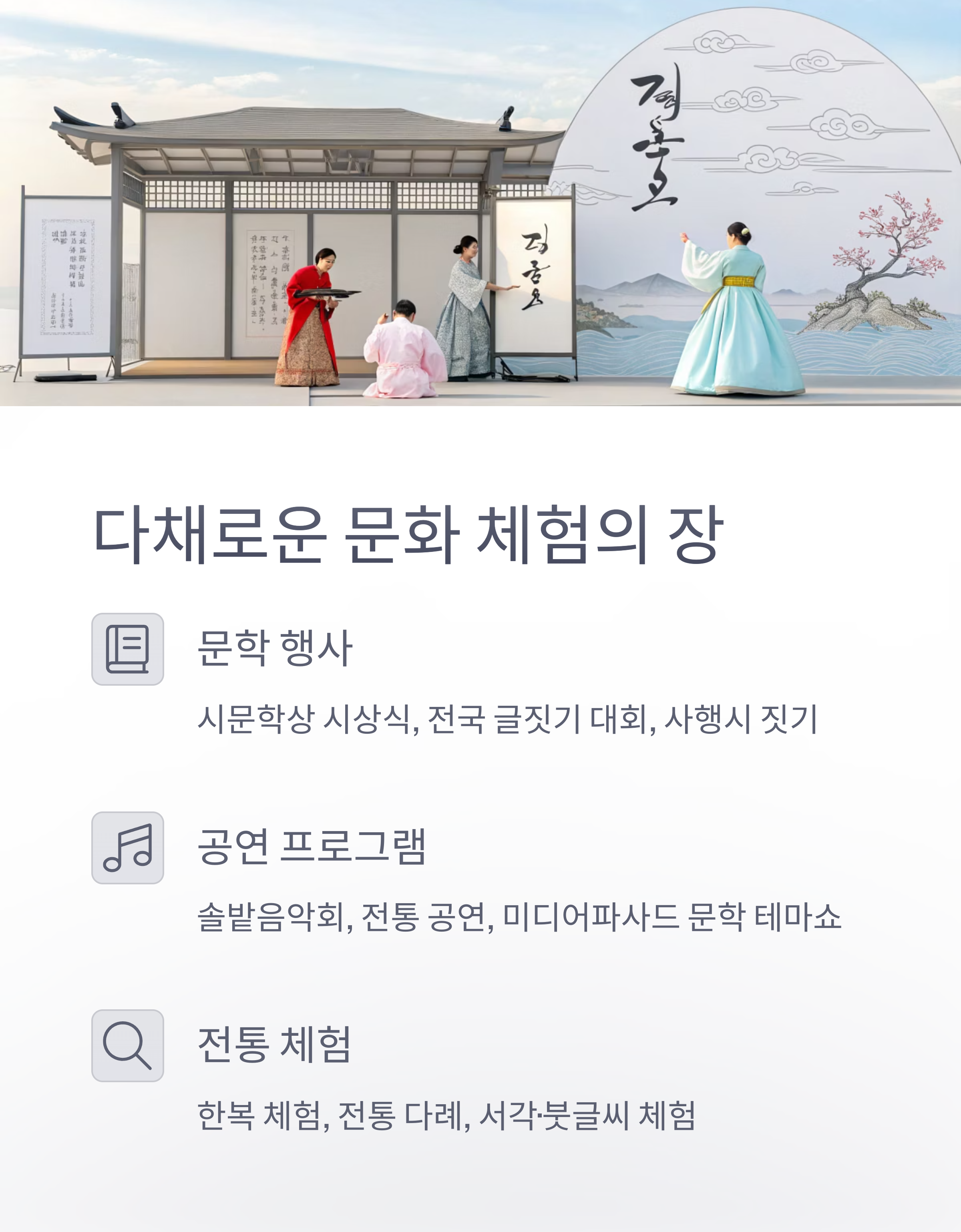 난설헌문화제는 문학과 전통, 자연이 어우러진 강릉의 대표 행사입니다. 2025년 5월, 특별한 가족 여행과 문화 체험을 원한다면 꼭 방문해보세요!