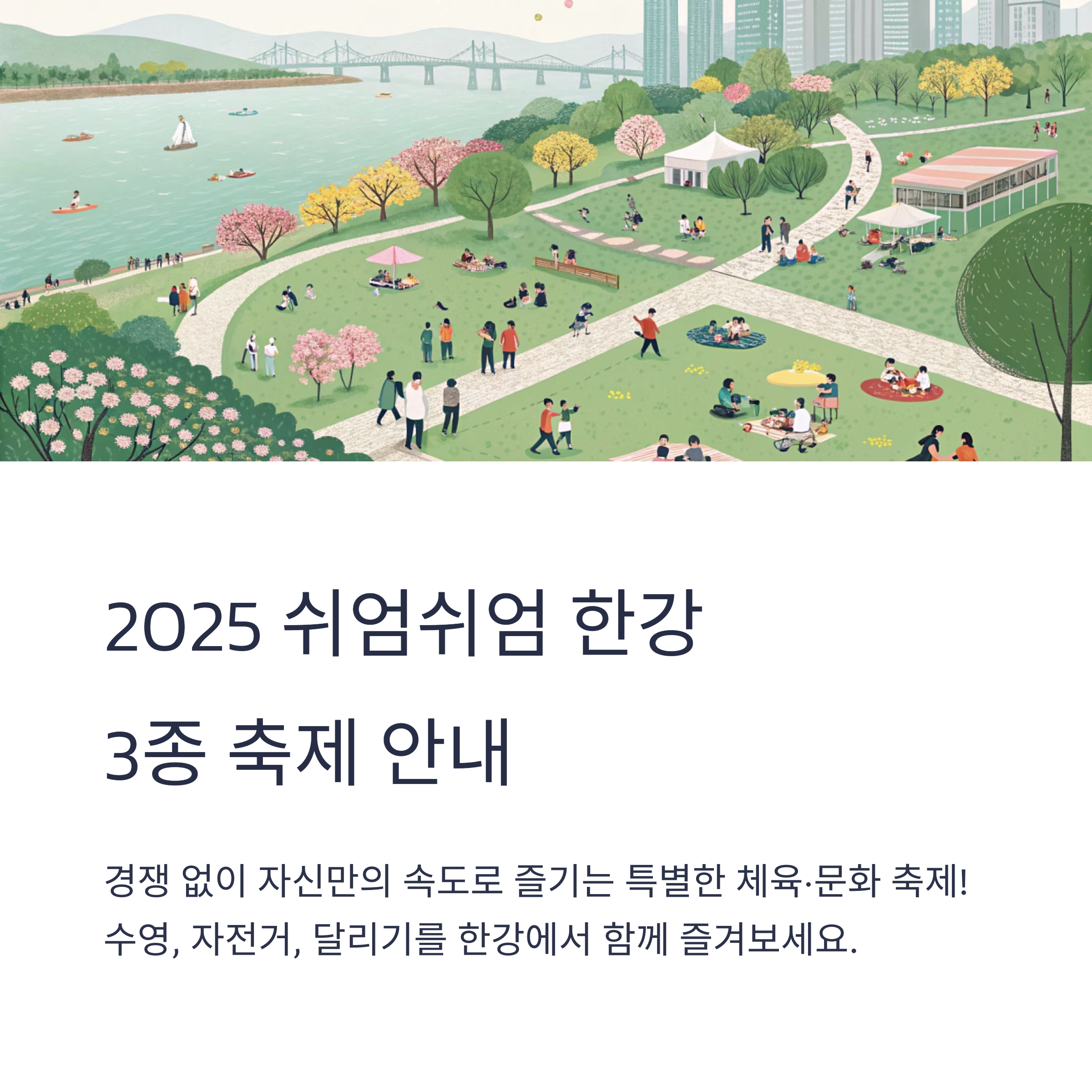 2025 쉬엄쉬엄 한강 3종 축제에서 한강의 봄과 스포츠, 문화의 즐거움을 모두 경험해보세요!