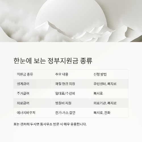 1. 한눈에 보는 2025년 저소득층 정부지원금 정리표