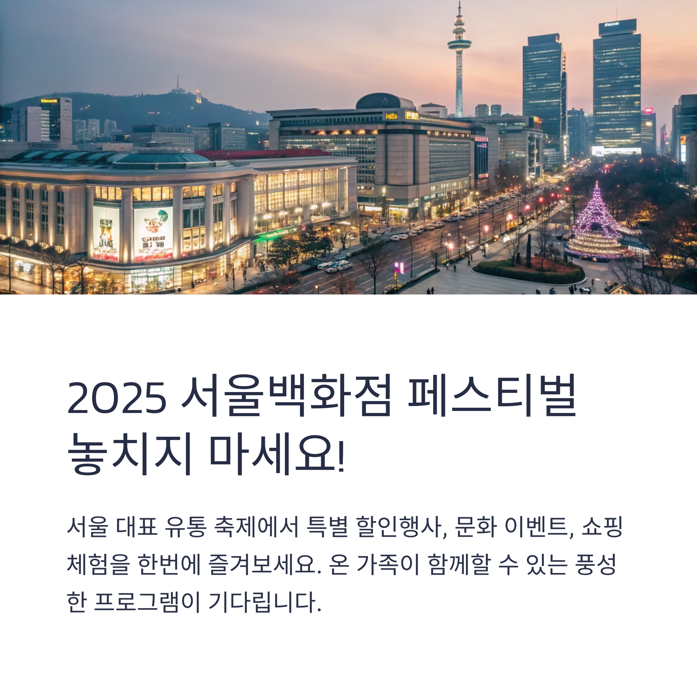 2025 서울백화점 페스티벌에서 특별한 할인과 문화 체험, 도심 속 힐링까지 모두 경험해보세요!