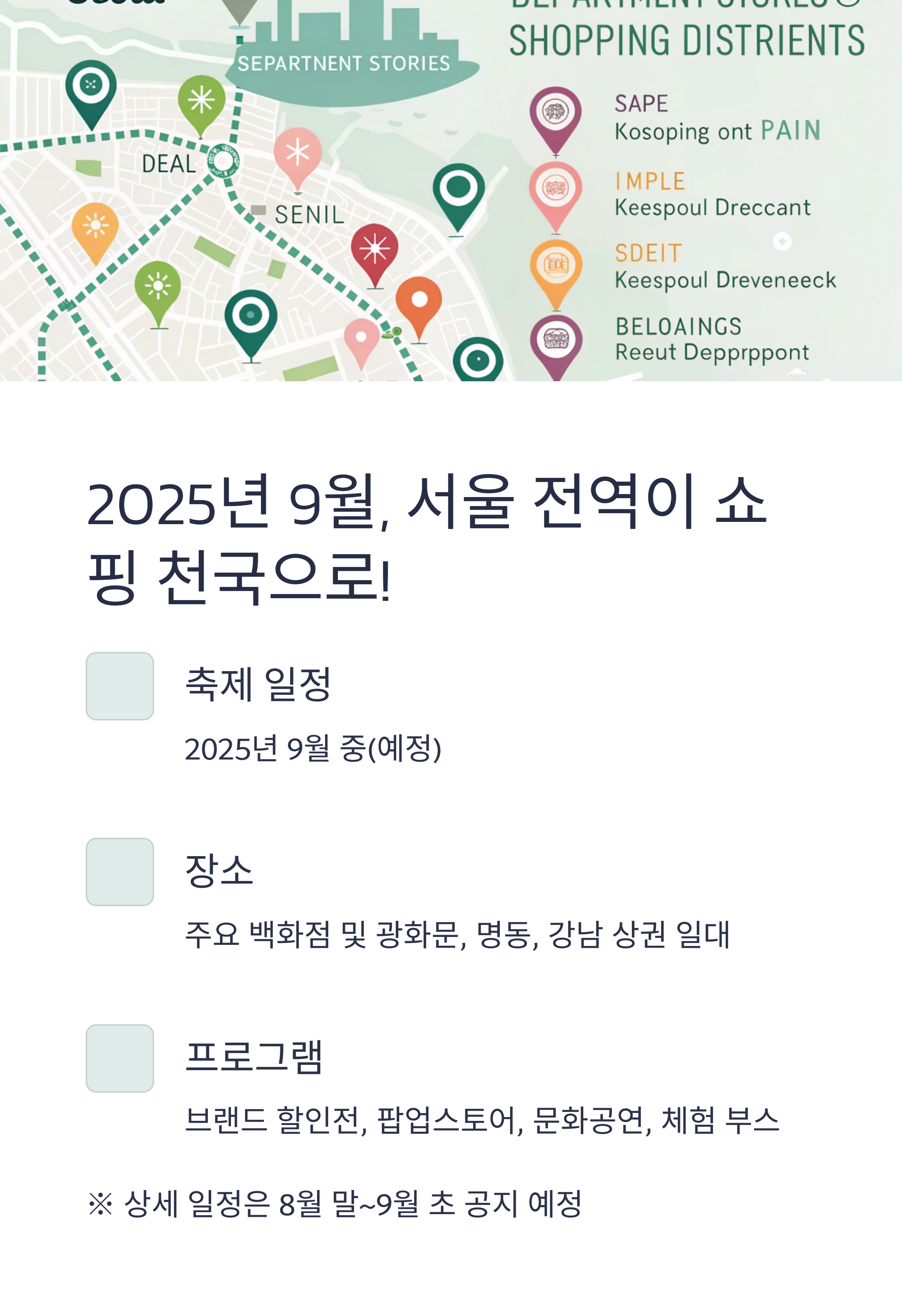 ※ 상세 일정과 참여 백화점, 이벤트 정보는 각 백화점 공식 홈페이지 및 서울시 홈페이지에서 8월 말~9월 초 공지 예정입니다.