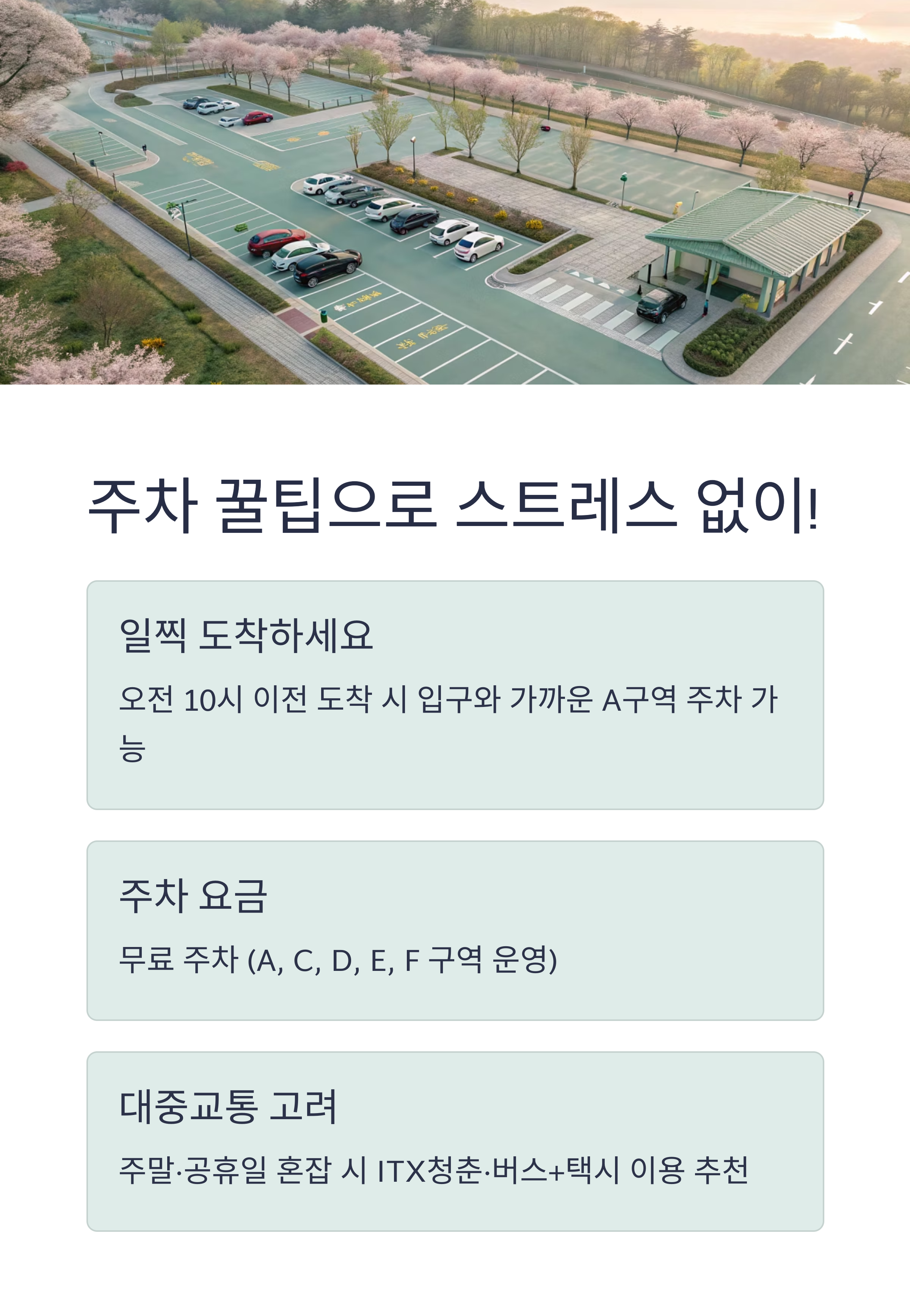 현장 팁: 입구와 먼 구역에 주차해도 셔틀버스나 도보 이동이 가능하며, 안내요원이 상주해 주차를 도와줍니다.