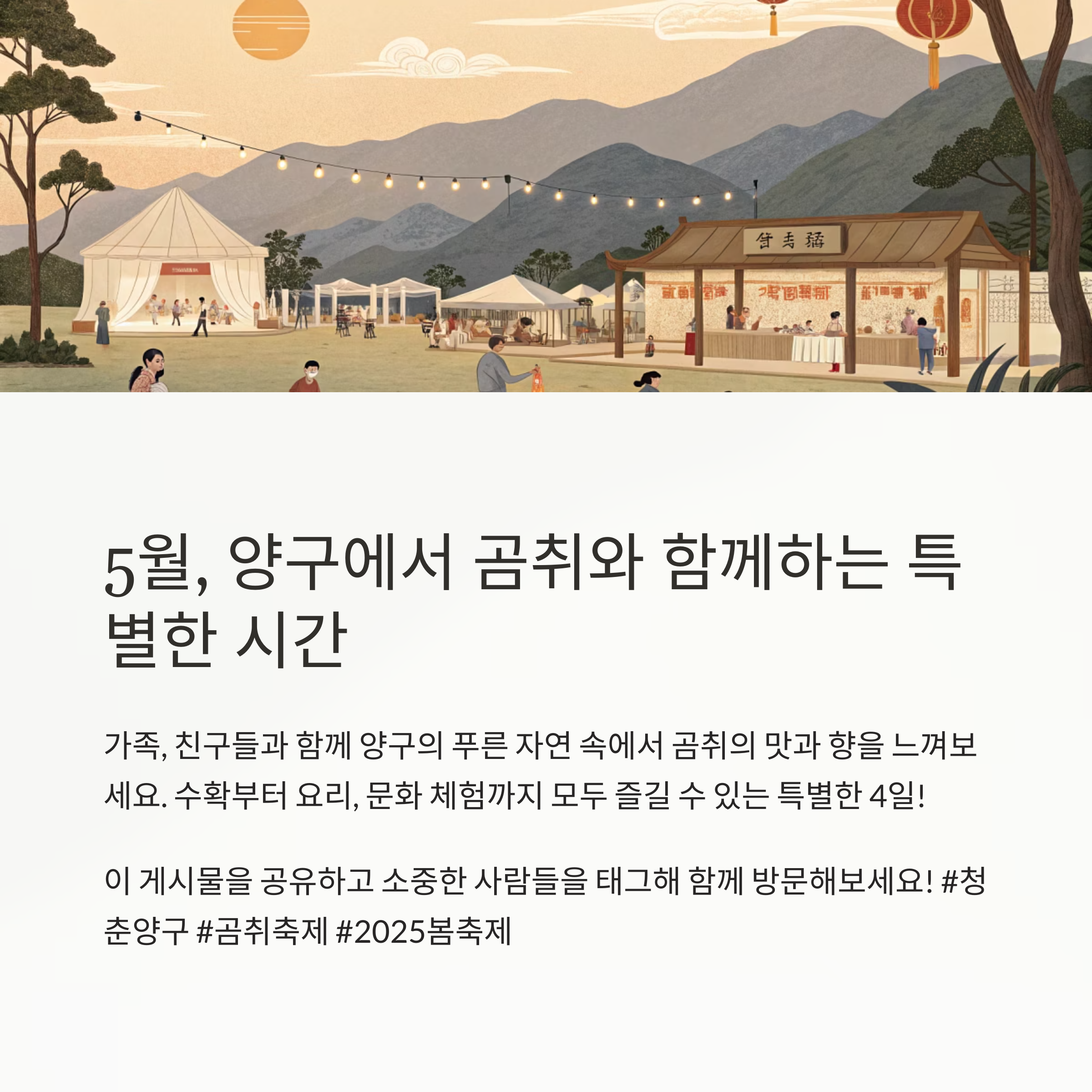 올해 5월, 꼭 청춘양구 곰취축제에서 특별한 시간을 보내시길 바랍니다.