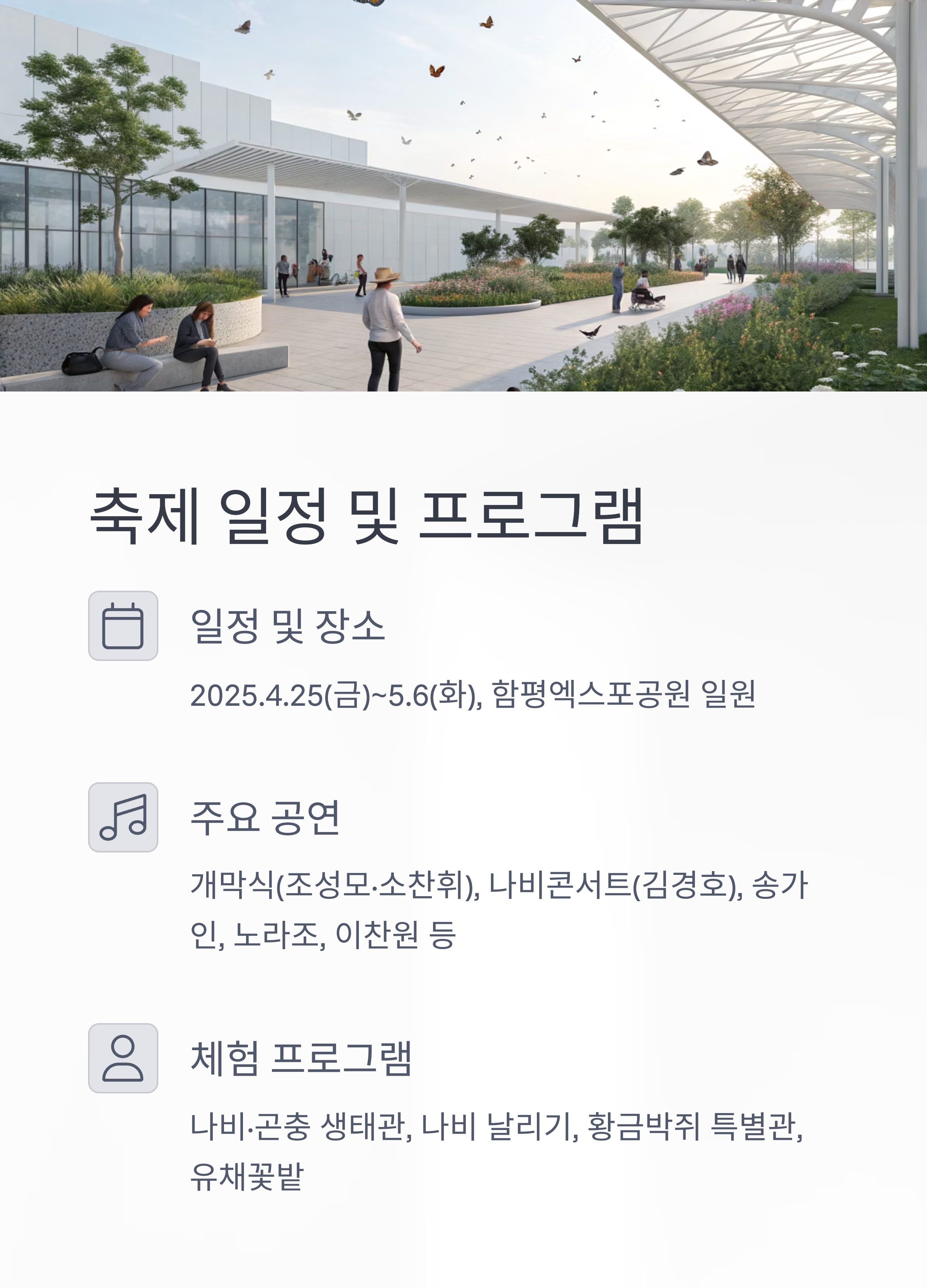 축제 전체 일정표, 공연·체험 타임테이블, 이벤트 등은 아래 바로가기를 통해 확인하세요.