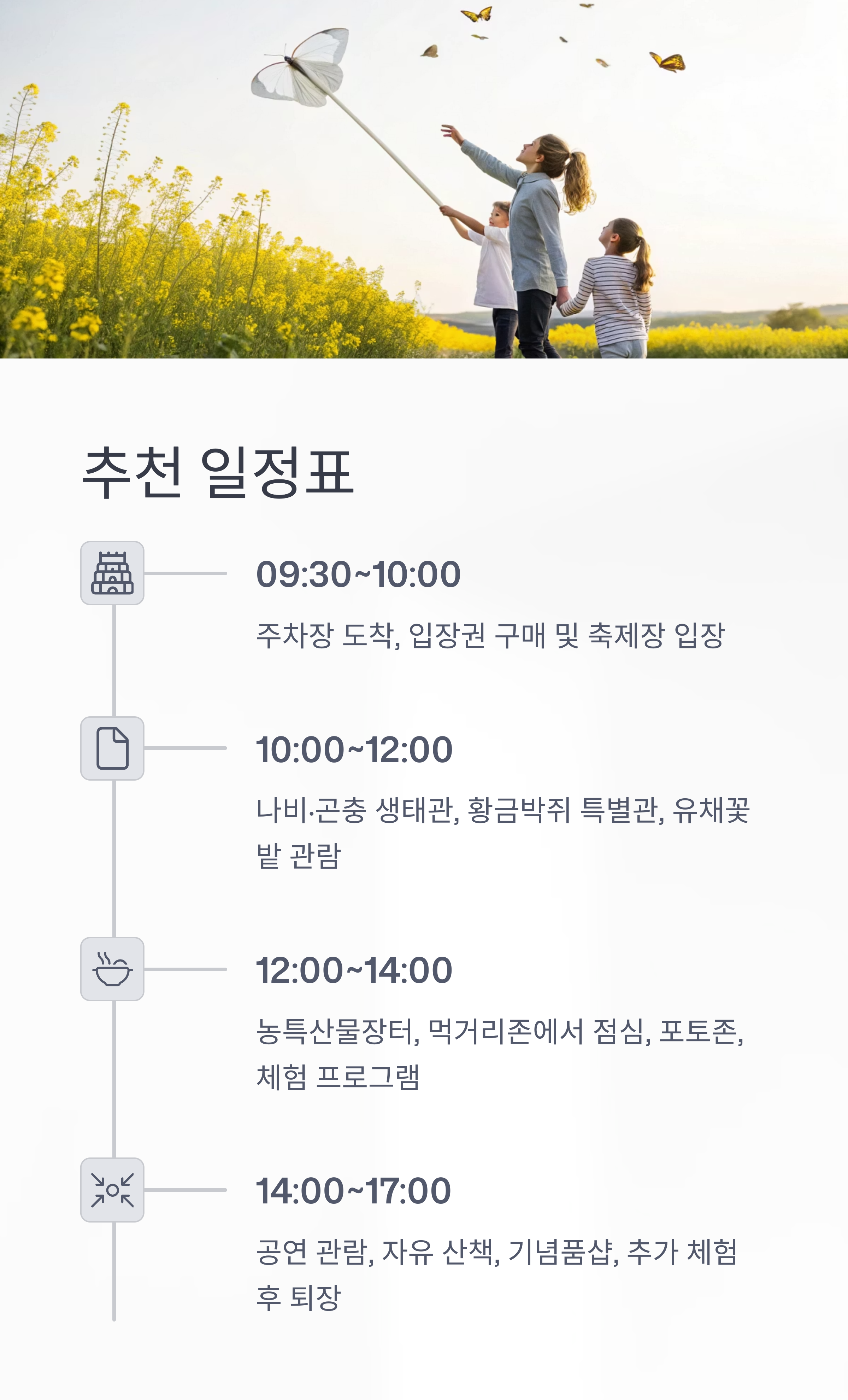 관람 팁: 오전 일찍 방문하면 주차·체험·포토존 혼잡을 피할 수